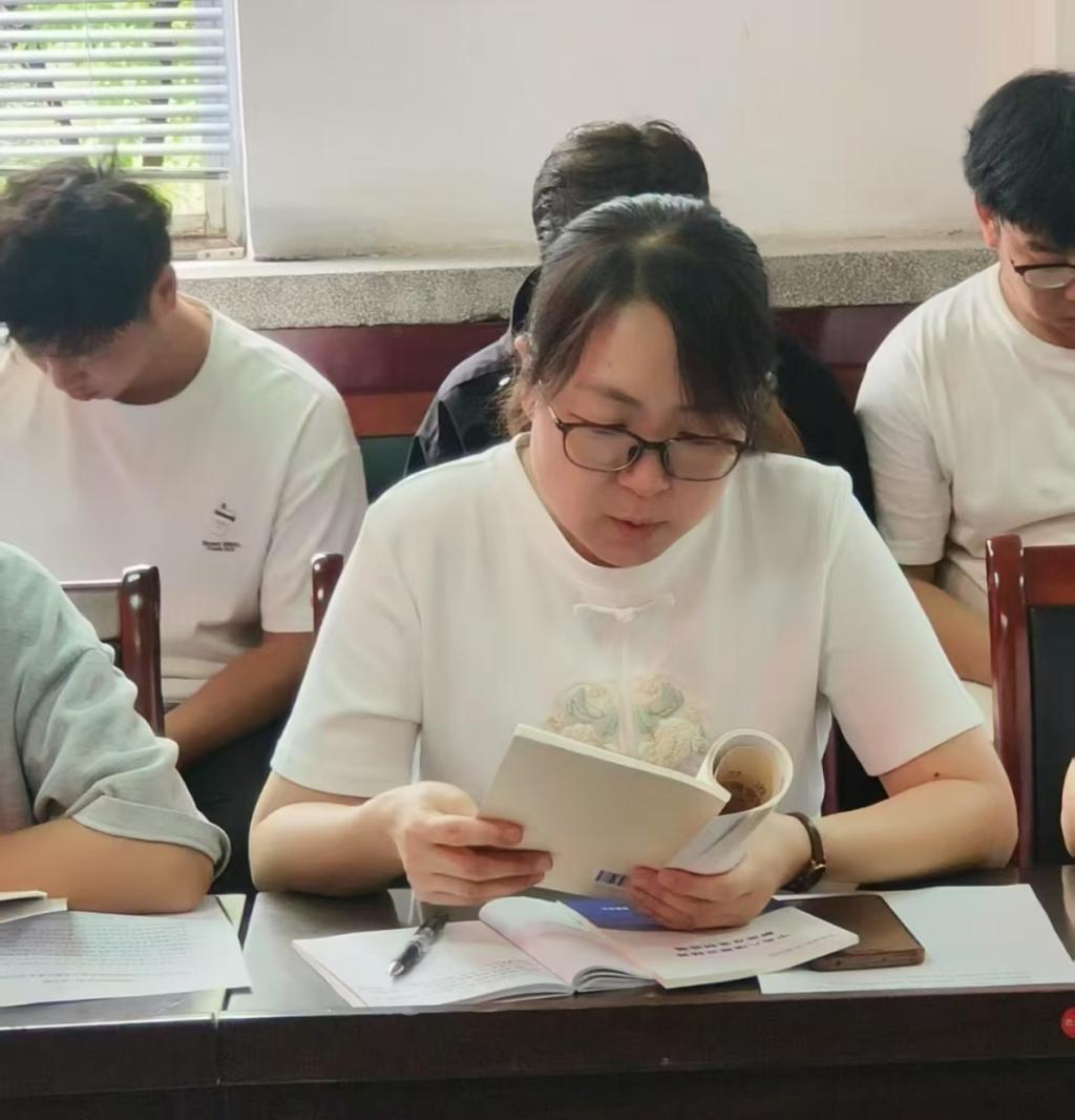 会议第一项:由党员李硕同志带领全体党员学习:坚定信心推动高质量发展高效能治理奋力谱写中原大地推进中国式现代化新篇章。