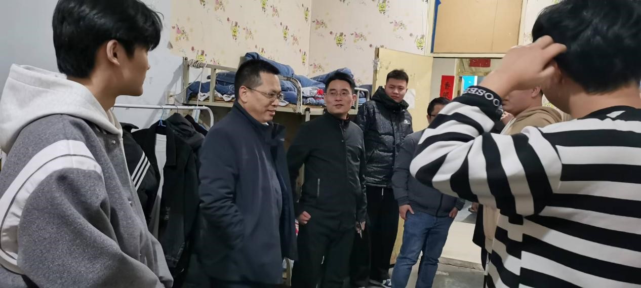 为进一步关心员工学习生活情况,了解员工思想动态,2月16日晚,副经理彭博、太阳集团tyc539经理辛峰、员工科科长南博带领全体辅导员走访员工宿舍。