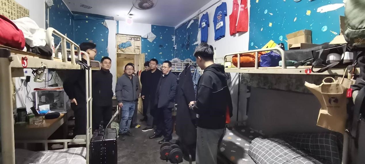 走访过程中,检查了宿舍的安全设施、硬件维护等,提醒同学们要加强安全意识,严禁使用违禁违规电器,要遵守宿舍管理规定,时刻牢记人身安全和财产安全,谨防电信诈骗,共同创建安全、和谐的宿舍环境。交谈中,彭博勉励同学们在大学期间要发挥主观能动性,在科创竞赛中磨炼技能,成长成才。同时鼓励同学们珍惜时光、互帮互助,营造积极向上的宿舍氛围。