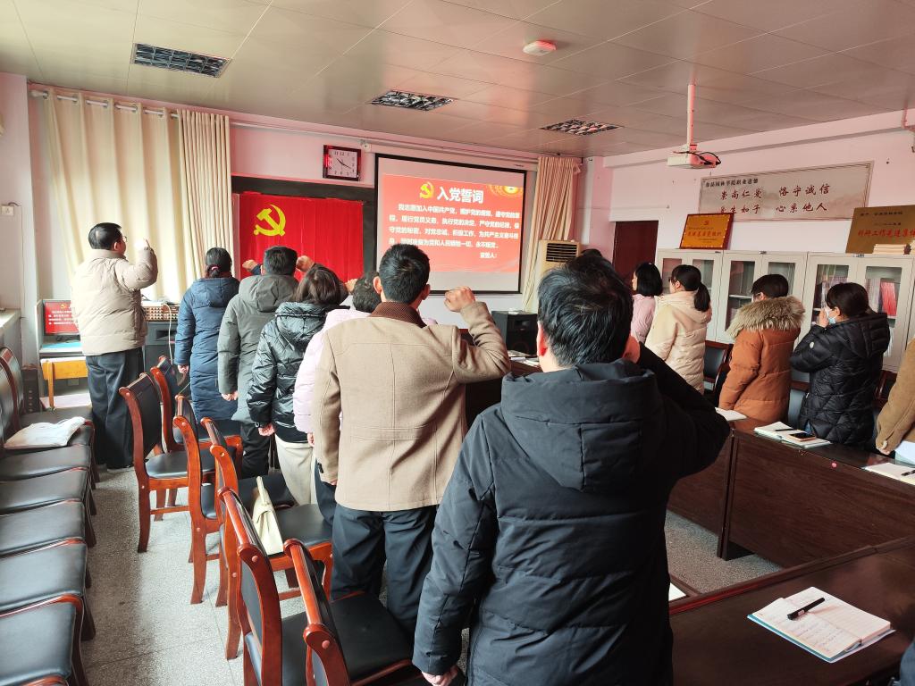 第五项:重温入党誓词。全体党员列队面向党旗,由党总支书记杜军带领全体党员进行入党宣誓。党员们高举右手庄重宣誓,接受心灵的洗礼。