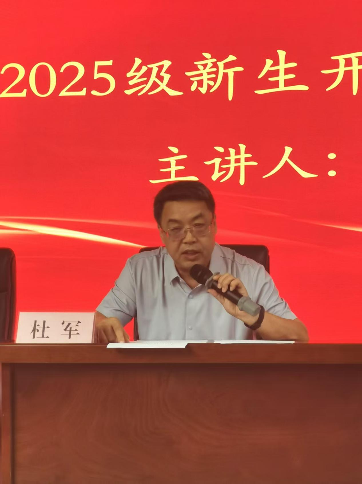 接着,党总支书记杜军发表讲话,对新生的到来表示热烈欢迎,同时从理想信念、品德修养、专业学习等方面提出要求,为新生上了开学第一课,激励新生们在大学期间刻苦钻研、勇于实践,成长为有理想、有本领、有担当的新时代青年。