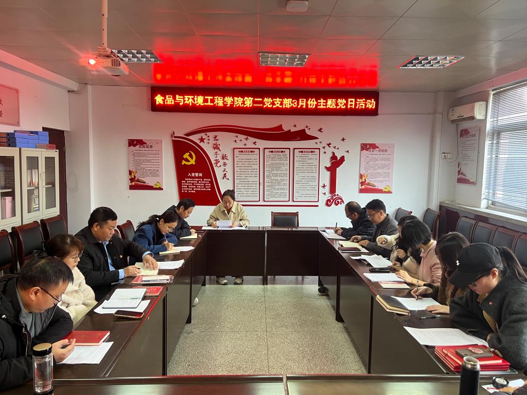 3月20日,食品与环境工程学院第二党支部在2408会议室召开3月份主题党日活动。活动围绕学习贯彻习近平总书记重要讲话精神、深化职业教育改革、开展组织生活会等内容展开,全体党员参加,支部书记陈玉琴主持。