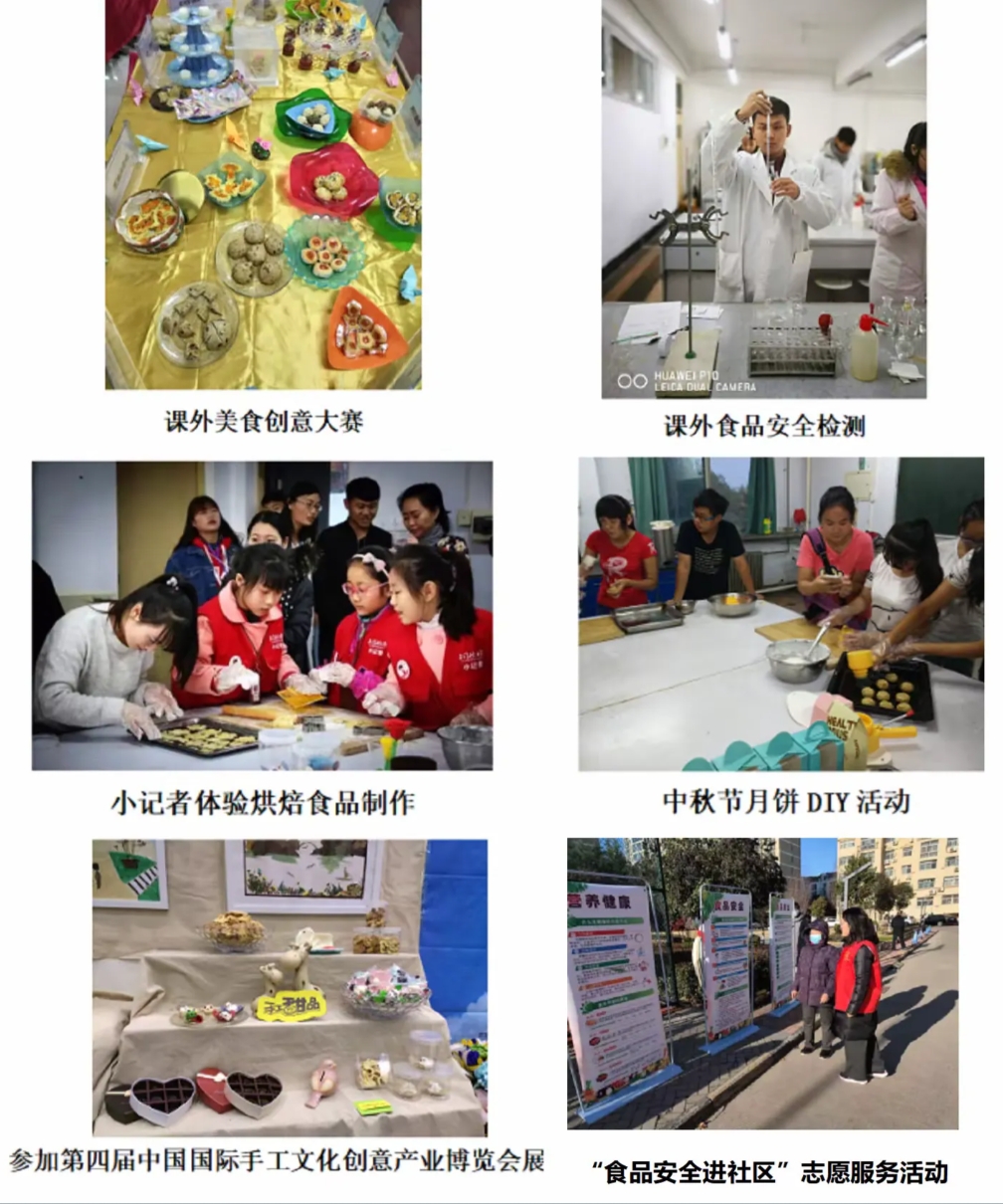 员工社团活动:依托食品制作协会等社团,积极开展食品制作、食品检测等课外实践活动,同时面向社会开发,积极开展食品营养、食育教育等活动。