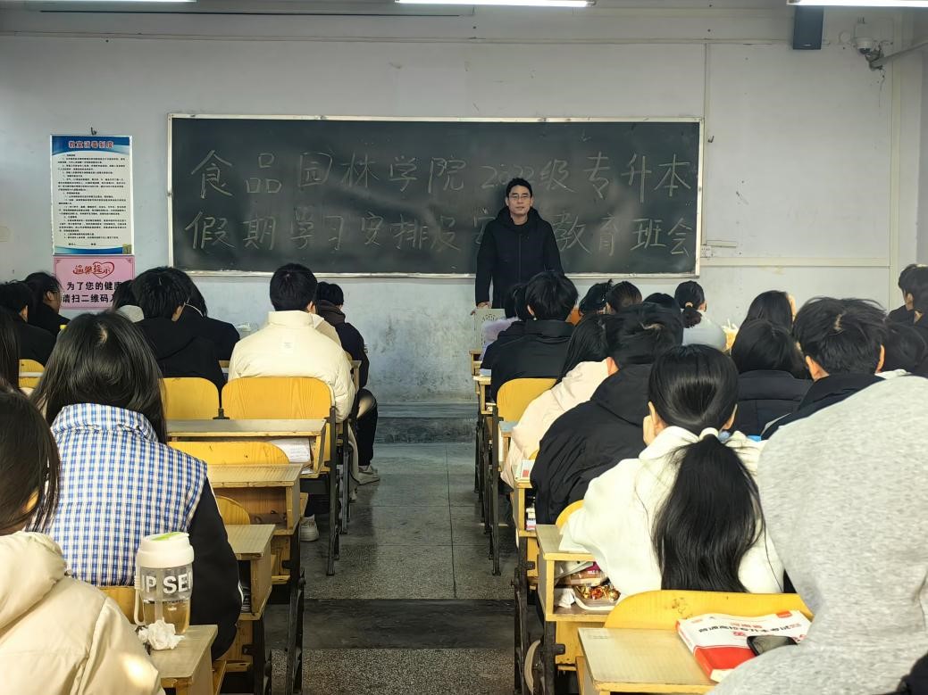 经理辛峰在会上着重强调安全与学业两方面要点。在安全层面,他从防溺水、防火、防煤气中毒、用电安全、交通安全、饮食安全及自我保护等方面展开细致讲解,提醒同学们离校时关闭电源门窗,防范财产安全隐患。面对即将来临的专升本考试,辛峰经理指出时间紧迫、任务艰巨,鼓励同学们珍惜时光,善用各类资源平台提升自我,全力备战以增强应试能力。