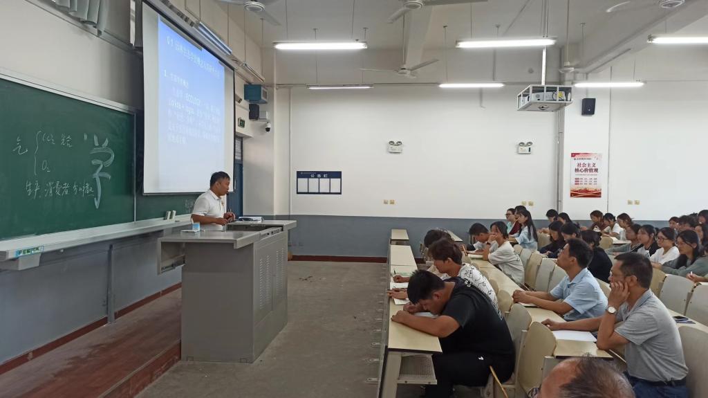 9月4日是新学期开学首日,为确保公司产品工作平稳有序,副经理彭博到太阳集团tyc539就开学第一天教学秩序进行巡查,太阳集团tyc539经理辛峰、副经理张绍军和教学科老师陪同。彭经理首先了解了前期院部课表编排、教材到位和领取情况、教师到岗及员工返校情况;实地查看了教学场所环境卫生、机房的软硬件设施,并就实训室仪器、设备、耗材等的准备情况进行检查督促。随后彭经理一行进入天鹅湖校区1206教室,听了刘欢龙博士讲授的《景观生态学》课程。