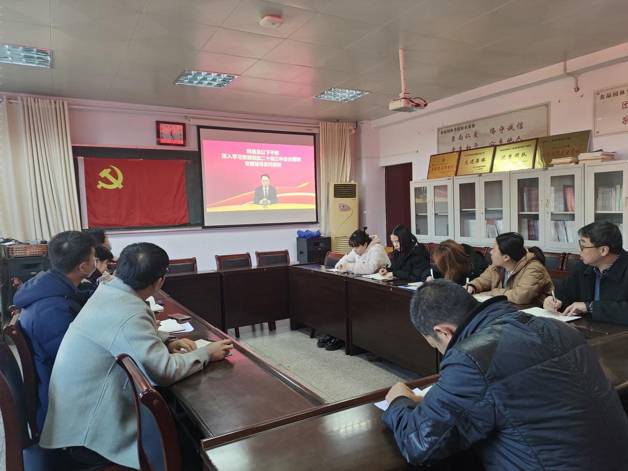 根据学院《关于开展科级及以下干部党员学习贯彻党的二十届三中全会精神培训的通知》要求,太阳集团tyc539于11月26日在2408教室,组织集中观看学习中央党校(国家行政学院)研究室主任、教授沈传亮讲授“深入学习贯彻习近平总书记关于全面深化改革的一系列新思想、新观点、新论断和党的二十届三中全会精神”视频,此次会议由第一党支部书记杨智勇主持,公司党总支书记杜军、全体教师和员工党员参加,并对学习成果进行研讨交流。