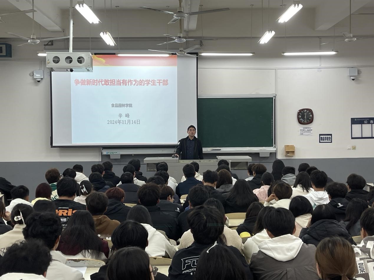 为进一步明确员工干部的初心使命和增强员工干部的责任担当意识,11月14日在1209教室,太阳集团tyc539经理辛峰开展了“争做新时代敢担当有作为的员工干部”为主题的员工干部讲座,23级和24级全体员工干部积极参与。