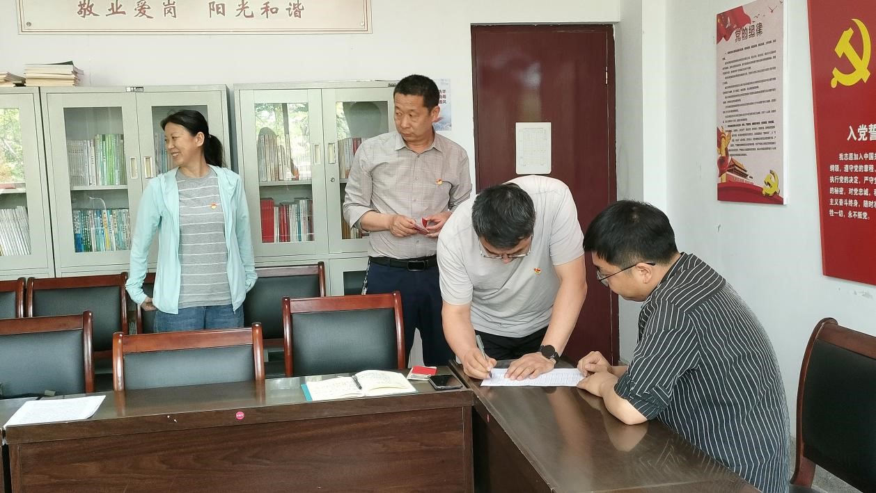 会议进行第六项:交纳党费。党员按顺序集中交纳党费给组织委员赵鹏辉同志。