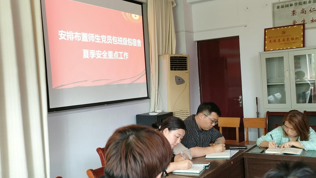 会议进行第四项:安排布置师生党员包班级包宿舍夏季安全重点工作。
