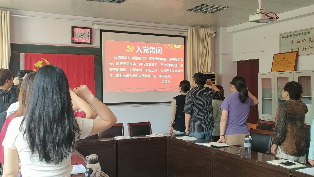 会议进行第五项:全体党员列队面向党旗,由党员卫婕同志带领全体党员重温入党誓词。