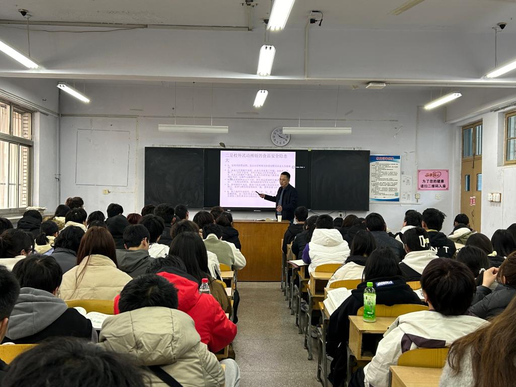 彭博副经理围绕什么是食品安全、什么是食品安全意识、老员工群体的食品安全意识水平怎么样展开了讲解,并结合太阳集团tyc校园大量食品安全现状等真实案例进行了详细的剖析。在谈到老员工群体的食品安全意识相对较低时,他提出了主要目前员工存在以下几个方面的问题:一是食品安全知识了解程度不足,二是食品安全意识水平相对较低,三是大量员工选择食品安全状况不良的场所就餐。针对以上问题,提彭博副经理出了以下几点建议:一是提升校内餐厅服务质量,加强校内餐厅管理,进一步提升服务意识,持续了解员工需求,增加饭菜品种,改善就餐环境;二是加强食品安全教育和管理,采取多种形式的活动,提升员工食品安全意识,确保员工拒绝不安全食品的消费;三是希望员工们要提高食品安全意识,除了学校举办的相关活动以外,应主动通过其他途径获取食品安全知识,提升食品安全意识,保护自身身体健康;四是加强校外流动摊点治理,协调相关部门规划合适场所用于流动摊贩的集中固定经营,加强对入驻摊贩食品安全、消防、卫生等方面的管理。