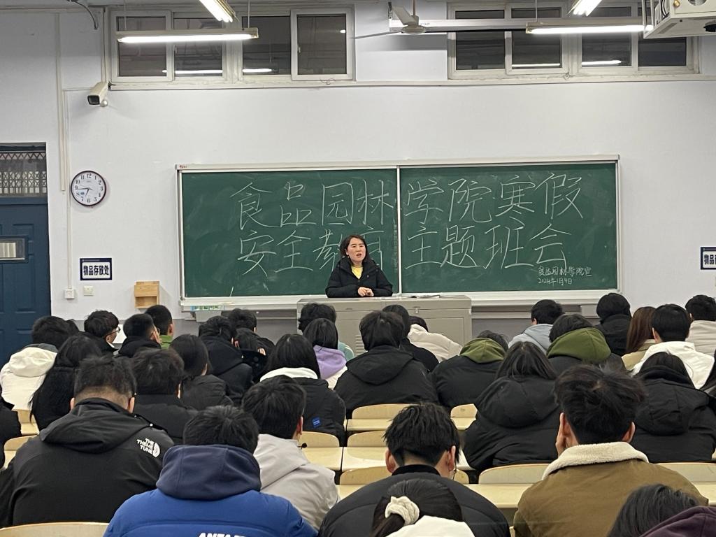班会上,赵老师就假期安全注意事项进行了总体强调,内容涉及交通安全、防水、防电、防煤气中毒、防食物中毒、防诈骗、防溺水、防迷信、防毒品等方面,重点强调外出交通安全、防冻防滑、禁止燃放烟花爆竹等人身安全。卫老师提醒同学们在离开宿舍前,要对宿舍进行全面的安全检查,整理好室内卫生,关闭水电开关,把各自的其他物品妥善放置好,最后一个员工离开时要关好门窗、锁好门。