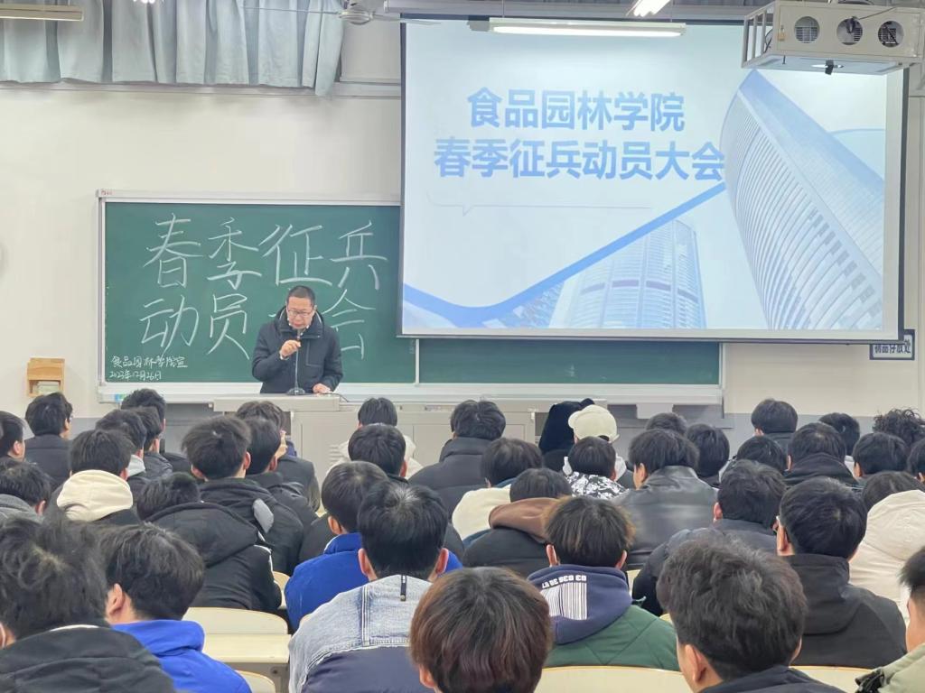 为响应国家征兵政策,加强国防教育建设,为军队凝聚优秀人才,太阳集团tyc539于12月26日下午在1107教室召开征兵动员大会,员工科科长杨志勇为主讲人,22级全体员工参加。