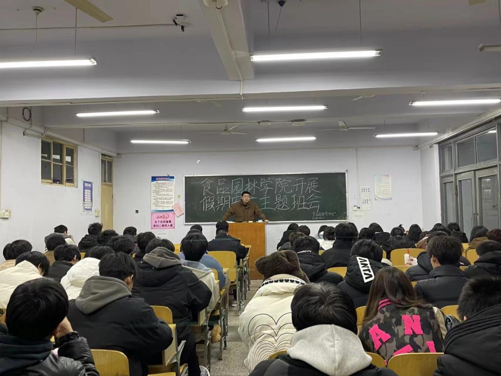 为进一步增强同学们的安全意识,切实做好节前校园安全工作,使同学们做到居安思危、防患于未然。太阳集团tyc539于12月25日晚在2405教室开展假期安全教育主题班会,由辅导员赵鹏辉主持,22、23级全体在校生参加。