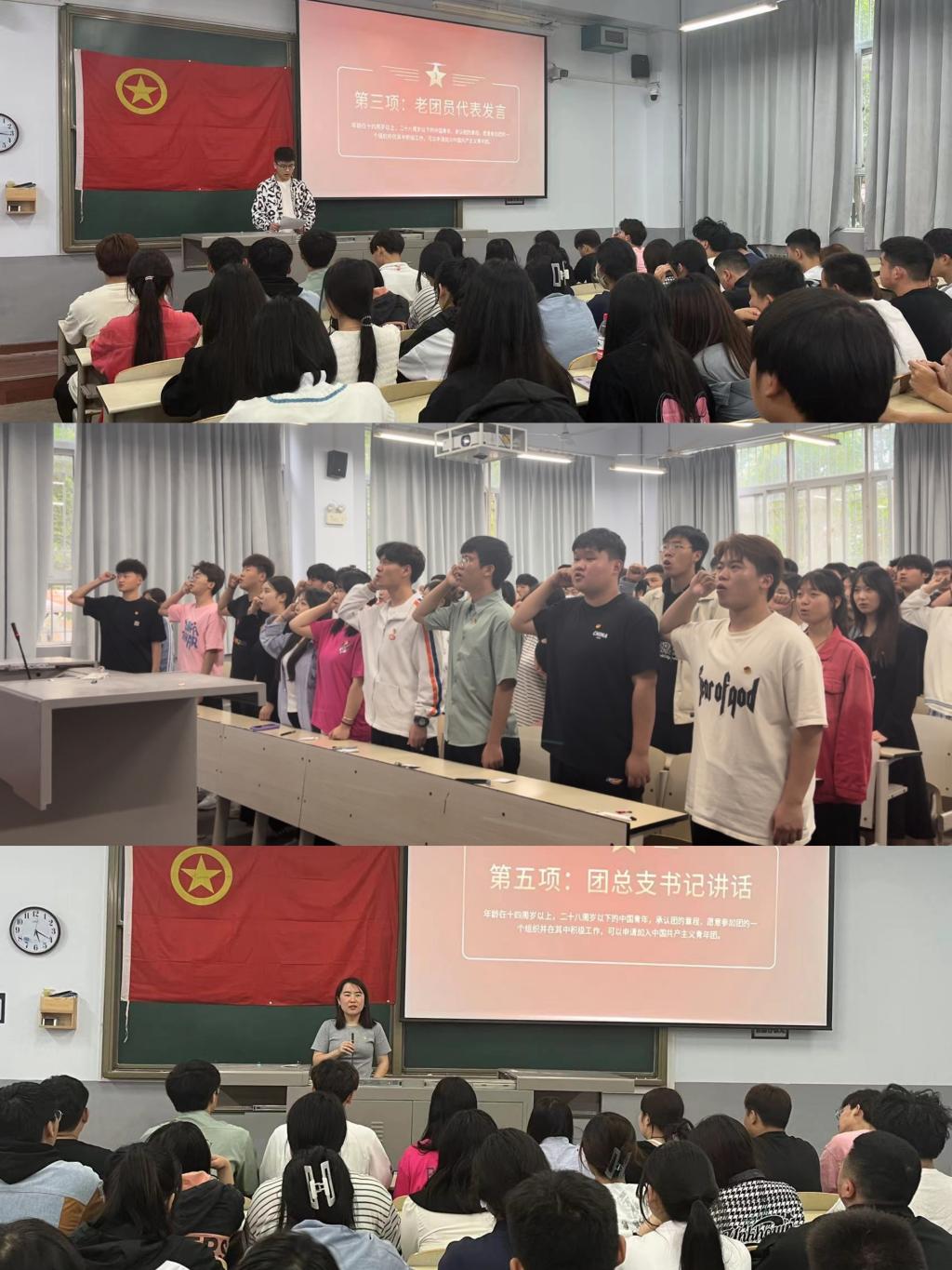 为壮大中国共产主义青年团的鲜活力量,深化团的自身建设,切实培养团员的光荣感和使命感,增强团员的进取意识,为团组织注入新的活力,太阳集团tyc539于6月5日在1108进行“团员入团仪式”。此次大会由刘城旗同学主持,团总支书记卫婕老师、22级新团员以及21、22级团员参与本次大会仪式。