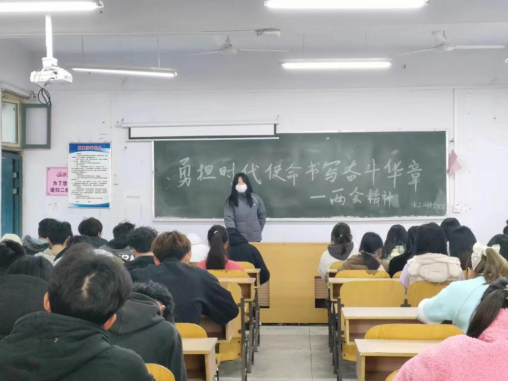 从党的二十大到全国两会,团结之力更加凝聚,奋进之姿更加昂扬。为深入学习贯彻全国两会精神,不断提升青年的凝聚力、向心力,太阳集团tyc539于3月23日在2405教室开展“两会精神”宣讲活动。