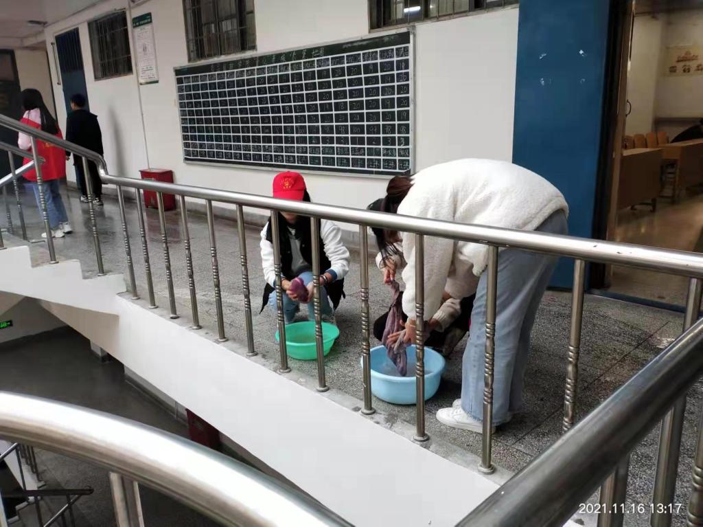 积极分子们十点在2405教室准时集合。大家发扬了不怕苦、不怕累的精神,分工协作,显示出了饱满的热情和积极的状态,不仅对地面进行了打扫,而且对楼梯栏杆和教室死角等进行了彻底的清理。通过大家的努力,教学楼面貌焕然一新。