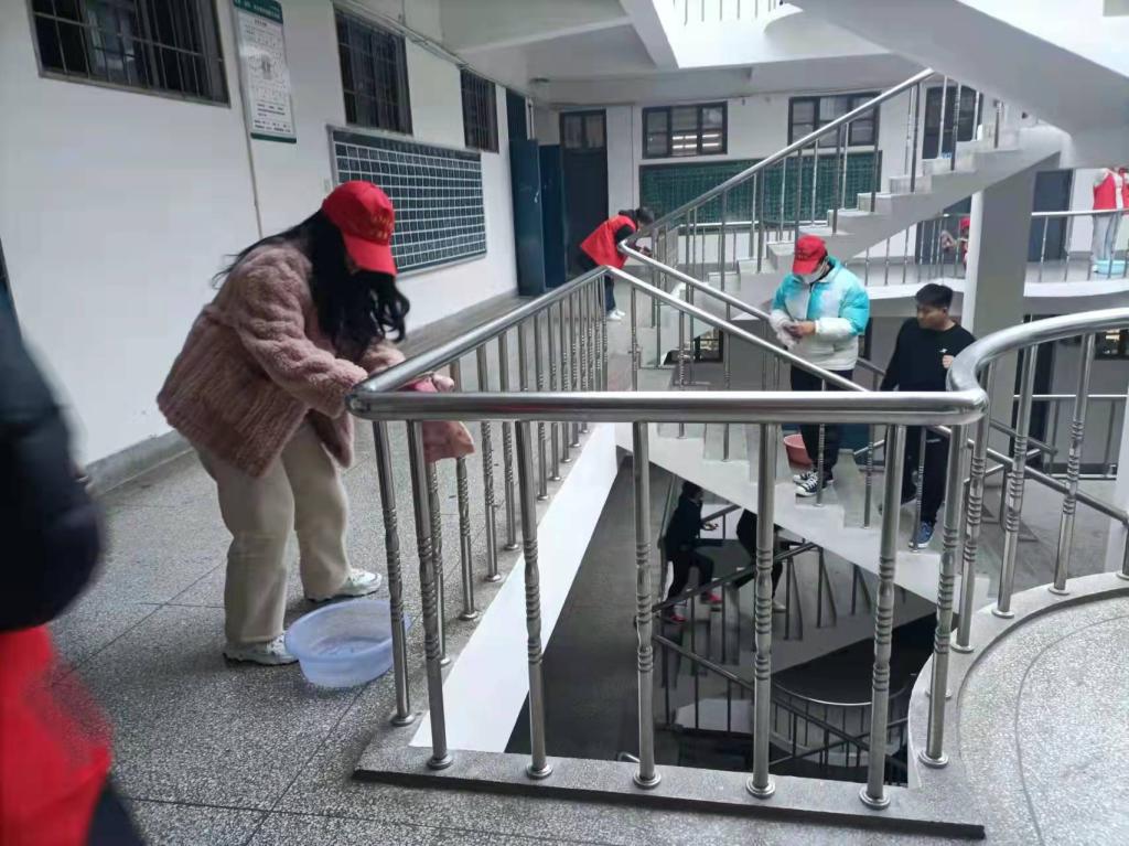 此次活动重点清扫了学校主干道两侧绿化带卫生以及楼梯死角问题。活动中,志愿者们身穿红马甲积极投身于清扫当中,他们有的用扫帚清扫楼层,有的忙着把从绿化带中捡出来的废纸、塑料袋等扫进垃圾箱,同学们热情高涨,以劳动为荣,乐在其中。