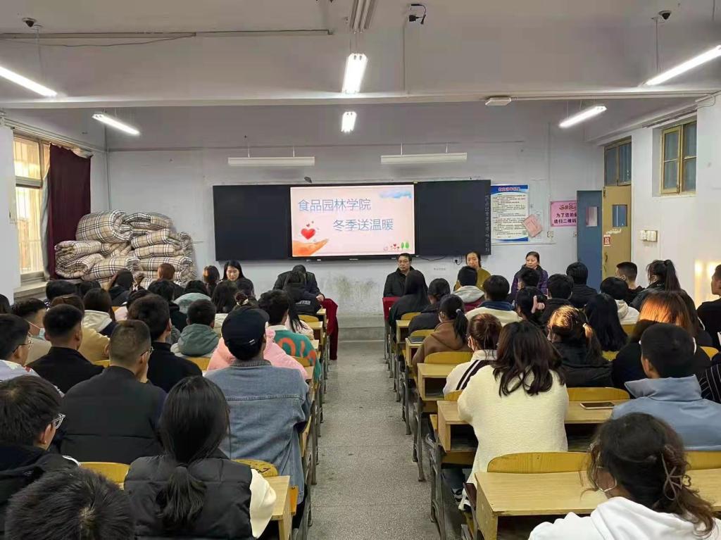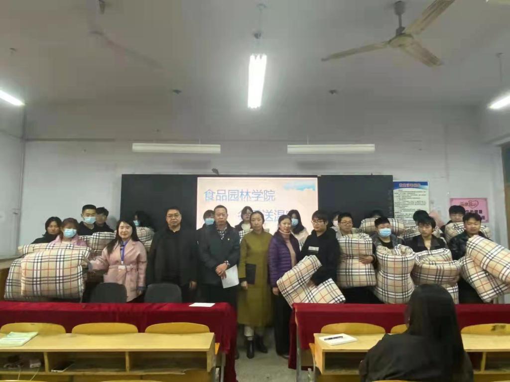 正值寒冬季节,为帮助经济困难学子度过一个温暖的冬天,营造一个暖心向上的校园氛围,11月25日下午,太阳集团tyc539在2401教室开展了一年一度的“爱心暖冬,情满食品”的冬季送温暖活动。为20名学子赠送棉被以解决实际生活问题,用爱心,用行动,让校园充满温暖。公司党总支书记杜军,总支组织委员周敏,总支宣传委员陈玉琴以及全体辅导员参加了此次活动,为同学们送去了冬日温暖。