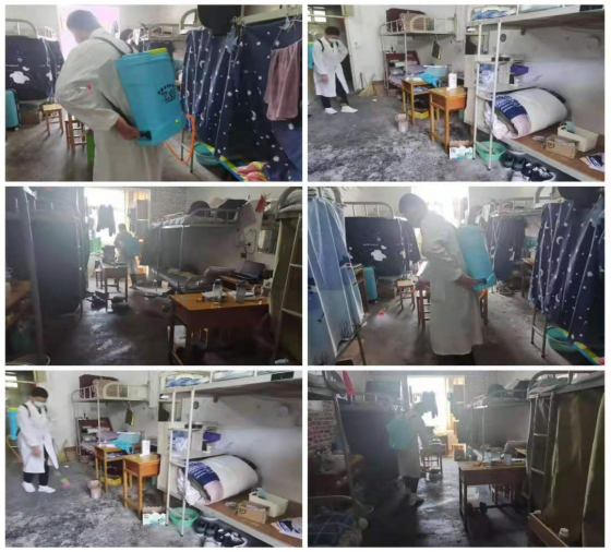 在“五一”假期期间辅导员召开各班网络班会,第一时间传达学校文件要求,教育员工提高防护意识,强调返校路上带好口罩,随身携带酒精湿巾,做好个人防护,如有感冒发烧立即上报。返校前一天,员工党员干部充分发挥模范带头作用把教室、宿舍、办公室进行全面消毒,为员工返校后工作的开展打下了坚实的基础。员工到校后,员工干部在校园内设立服务站,进行行李消毒和体温测量登记,准确掌握员工的健康状况。5号晚自习开展返校疫情防控班会,再次排查入学前是否有人去过中高风险地区,摸排“五一”出行情况,明确学校疫情防控要求,坚决做到守土有责,守土尽责。