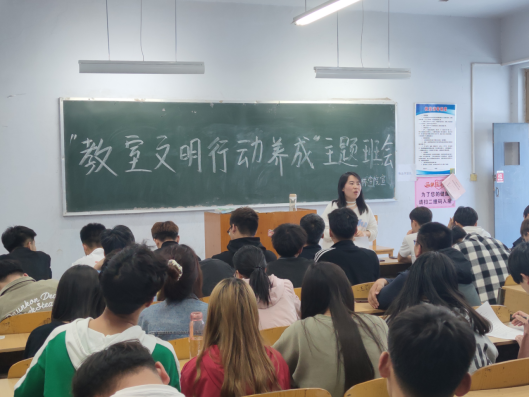 教室文明行动养成活动落实以人为本的科学发展观的核心,以建造和谐校园为中心,以提升学院思想道德水平和人文素质为目标。有文明的个人才会有文明的班级、团体,才会有文明的校园以及文明的社会。此次班会告诫同学们应不断强化个人修养,在提升素质的过程中深化自己的道德境界,最终形成良好的习惯。