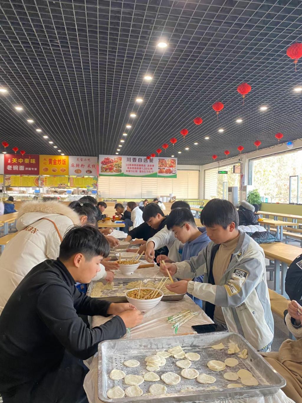 下午三点,活动准时开始。同学们坐在食堂固定位置开始大显身手。大家围坐在一起,每组同学都别出心裁地包着饺子,象征着学院教育事业的蒸蒸日上。在包饺子的同时,大家围绕学习、生活、工作等话题不时交谈着,同学之间的感情也随之加深。终于在大家的不懈努力下,一碗碗热气腾腾的饺子在大家的期待中被端上了餐桌,吃着大家自己包的香喷喷的饺子,大家感受到了青春的快乐和集体的温暖。