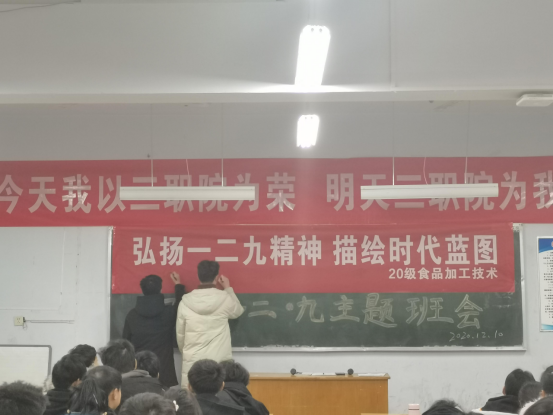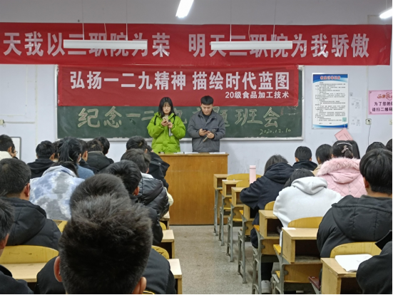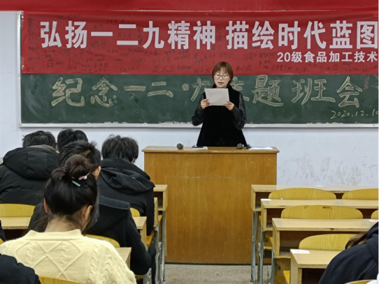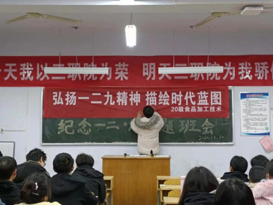 为缅怀一二九,共抒爱国情怀,太阳集团tyc539食品加工技术于12月10日下午在2401开展了“纪念一二·九运动”主题班会。