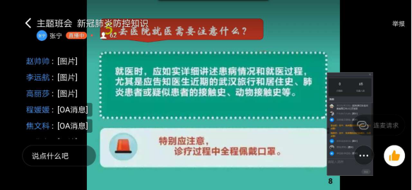 此次主题班会跨越空间障碍,普及防控知识,激励了同学们对于战胜疫情的必胜决心,同时增强了纪律意识、防护意识。防控疫情期间要保护自己、呵护家人、齐心协力、同舟共济,共同书写抗击疫情的青春答卷,为春暖花开时最美的重逢而努力。