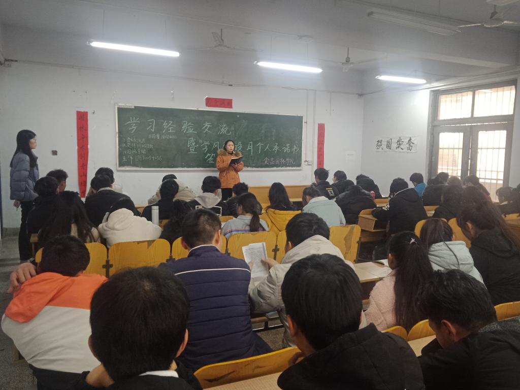 会上,石莹莹老师首先说明了此次会议召开的目的,要求19级全体员工要认真听取学长学姐的学习经验,调整自己目前的学习态度和习惯。随后,18级员工代表王洋、张贺祥、介璐瑶、于佳,一一上台与19级员工进行了学习经验分享。王洋和张贺祥同学主要从专业特点,职业目标两方面分享了自己的学习规划和收获;介璐瑶和于佳同学结合自身的体会,主要针对大学的学习特点、学习方法,课余生活的安排进行了交流。最后,在周亦桥、张宁老师的带领下,19级全体员工签订了个人学风承诺书,并由员工代表王海帆带领大家进行了郑重承诺。