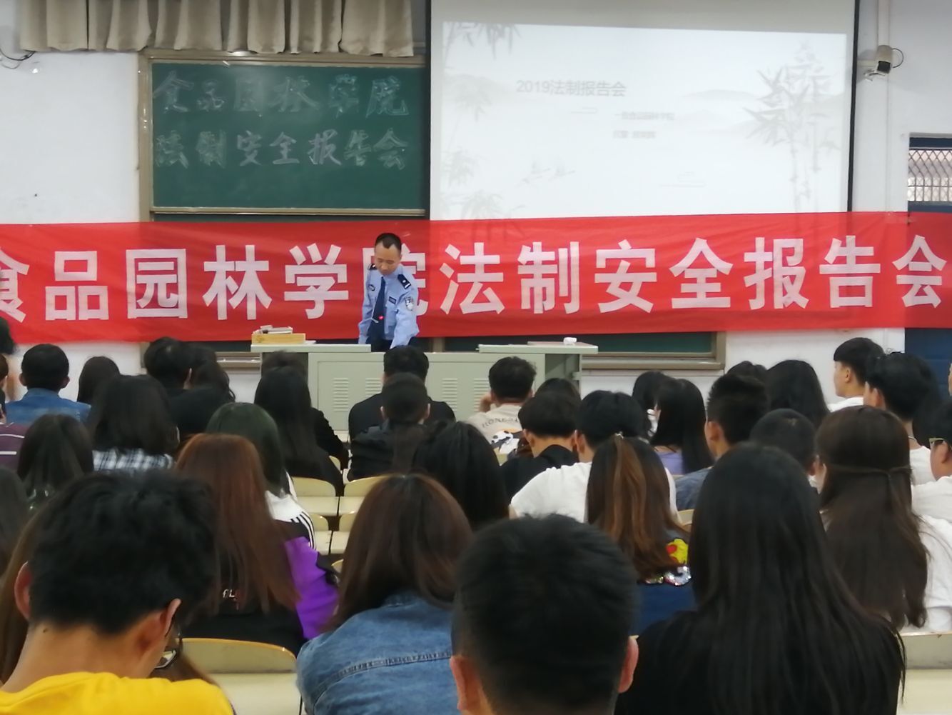 为进一步提高同学们的安全防范意识和技能,2019年5月9日下午3:00,太阳集团tyc539邀请警务室敖警官在1301教室为同学们做法制安全教育报告会,17、18级全体同学认真听取了报告。