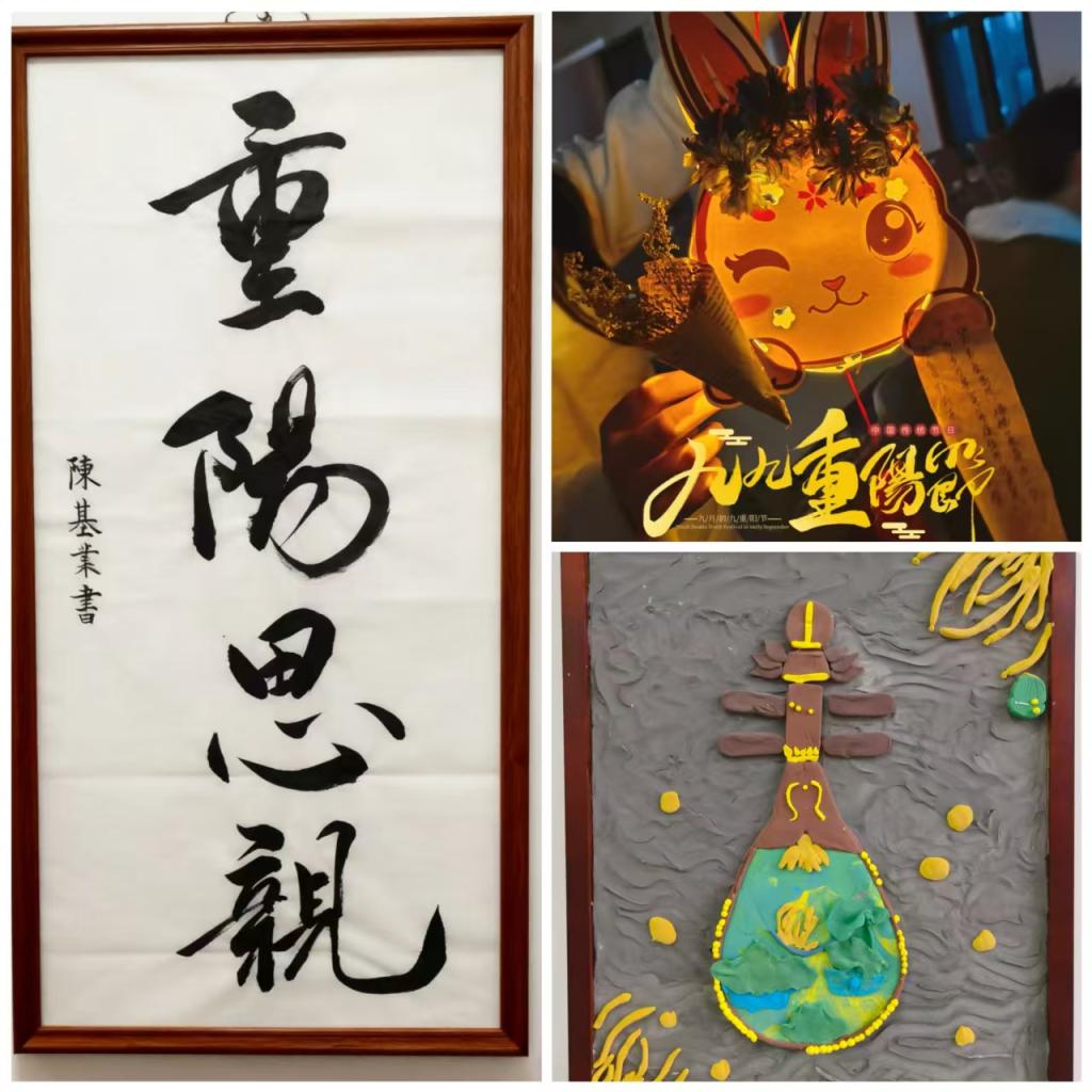 活动吸引了来自数十个宿舍踊跃参与。同学们充分利用卡纸、彩泥、布料、落叶等环保材料,巧手制作出一件件饱含深情的作品。有的宿舍用遒劲的书法写下重阳文字,笔触间流淌着对长辈的敬意与祝福;有的宿舍则精心制作了形态各异、栩栩如生的手工菊花,用永不凋零的美丽寄托对长者健康长寿的美好祈愿;更有的宿舍创意性地制作了古雅的“菊花灯”,将光影艺术与传统意象结合,暖黄色的灯光仿佛承载着绵绵的思念与感恩,点亮了整个活动现场。