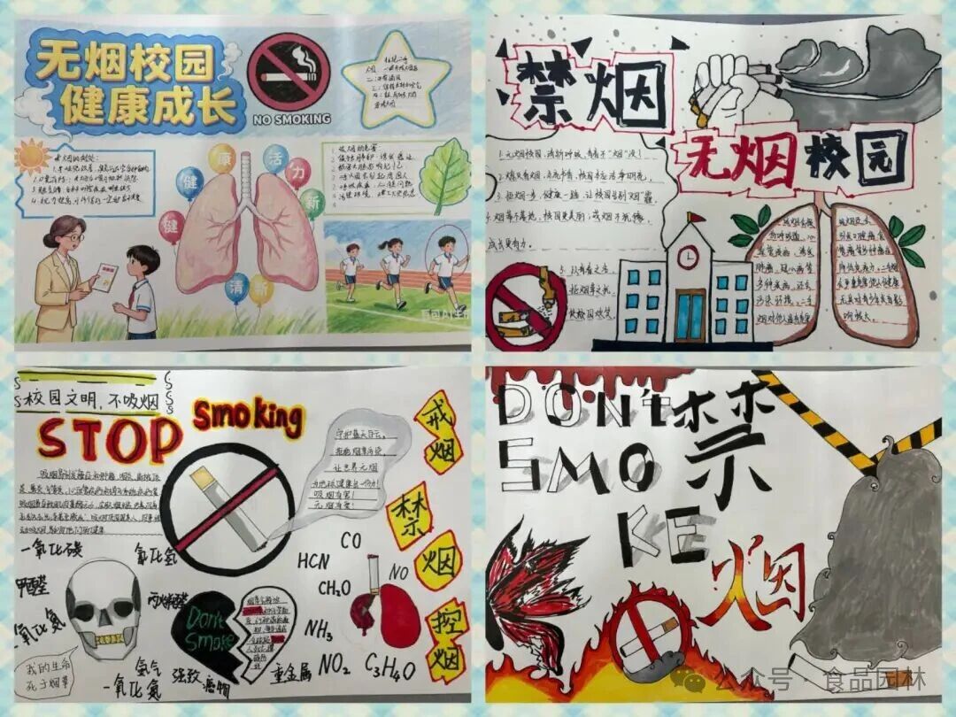 活动自启动以来,得到各班级积极响应。同学们以笔为媒、以画寄意,创作出一批主题鲜明、内涵丰富的手抄报作品。有的以震撼视觉的画面,揭示吸烟对肺部和心血管的严重危害;有的以温暖明亮的笔触,描绘无烟校园中青春跃动的美好场景;还有的以简洁有力的标语,传递出文明健康、自律自控的生活态度。每一份作品都凝聚着同学们对“无烟”理念的深入思考,也表达了他们对健康生活的共同向往。